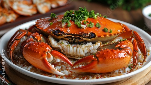 crab, food, seafood, dish, cookery, dinner, delicious, tasty, appetising, eatery, plate, cooked, red, orange, rice, steamed, garlic, scallion, photo, styling, culinary, gastronomy, meal, closeup, shot, overhead, seafood, crustacean, platter, accessing, main, course, delicacy, epicure, receipe, cooking, preparation, ingredient