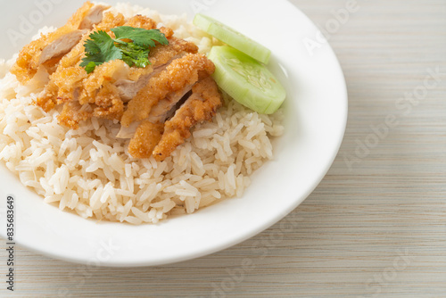 Steamed Rice with Fried Chicken or Hainanese Chicken Rice