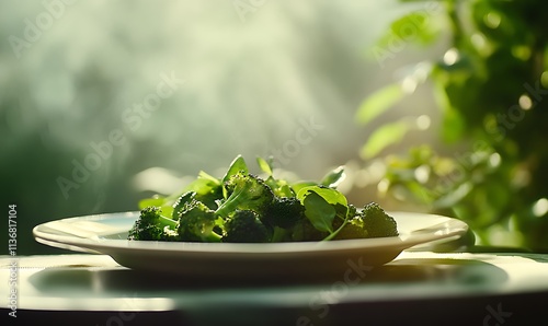 broccoli, steaming, garnish, culinary, delight, plate, white, dish, green, healthy, food, vegetable, fresh, delicious, alimentary, diet, meal, dinner, lunch, snack, cooking, cookery, kitchen, eatery, eat, eating, tasty, favor, aroma, steam, vibrant, colours, nature, plant, leaf, basil, background, sunlight, shadow, table, wood