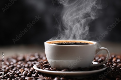 Steaming Cup of Black Coffee Surrounded by Beans, Evoking Warmth and a Morning Ritual, Perfect for Food and Beverage Marketing : Generative AI