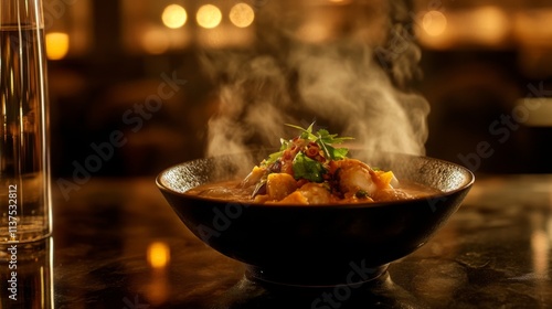 Steaming Hot Gourmet Dish with Fresh Ingredients in Elegant Bowl