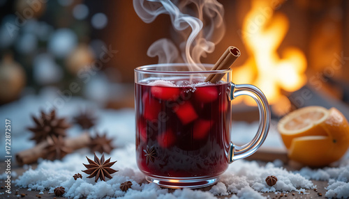 mulled wine, steaming, cinnamon stick, star anise, cosy, fireplace, festive