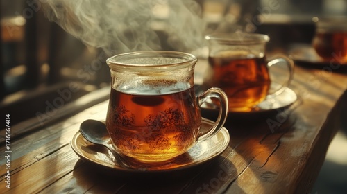 tea, teacup, cafes, sunlight, wooden, table, relaxation, drink, hot, beverage, glasses, warm, cosy, morning, afternoon, autumn, winter, steam, aroma, fragrance, refreshment, spice, herbal, healthy, lifestyle, comfort, calmness, serene, peaceful, calm, quiet, happy, content, joyful, restful, inviting, delicious, favor, taste, ambience, atmosphere, background, texture, vintage, old, natural, steaming