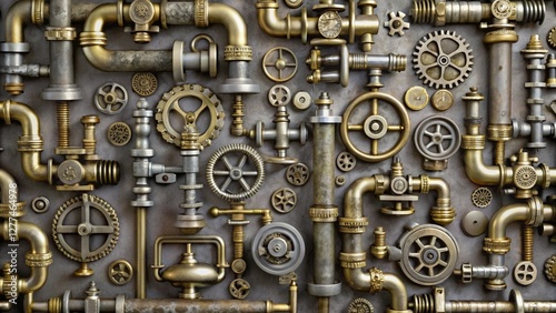 collage, industrial, gear, pipe, gold, silver, metal, cog, machinery, vintage, retro, technology, design, engineering, steam, clockwork, brass, copper, bronze, wheel, wire, rust, texture, background, abstract, art, image, graphic, illustration, fantasy, science, fiction, futuristic, victorian, gothic, mechanic, workshop, factory, power, energy, innovation, creativity, aesthetic, style, antique, object, element