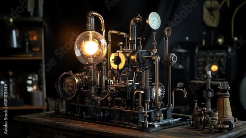 Steampunk Lamp: A Futuristic Machine with Gears and Pipes