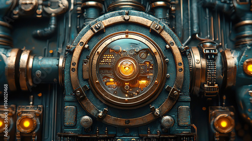 part, gear, cog, piston, lever, pipe, brass, copper, rivet, bolt, screw, chain, wheel, pulley, spring, gauge, dial, meter, handle, mechanism, machinery, steam, engine, wind, chimney, clock, frame, support, panel, plate, rod, bracket, clamp, hinge, joint, sprocket, bearing, belt, arch