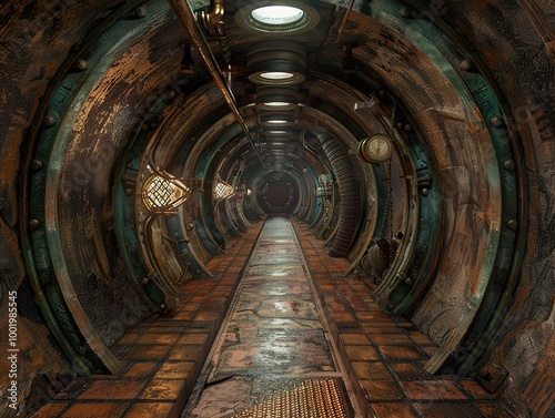 Steampunk Tunnel: A Grunge Futuristic Corridor