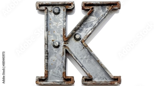 Steel staples shape letter K in uppercase isolated on white background in artistic font style