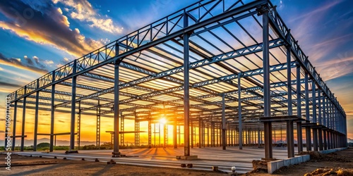 Steel Structure Construction at Sunset, Construction, Building, Structure