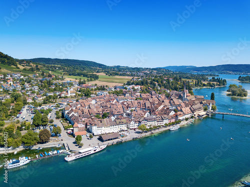 aerial, town, switzerland, ancient, old, village, river, historic, europa, house, swiss, am, antique, architecture, stein, city, rhine, traditional, decoration, art, wall, german, destination, hall, age, middle, beautiful, canton, clock, german, painted, typical, vintage, timbered, timber, mediaeval, castle, monastery, landmark, church, travel, culture, trip, george, retro, roof, st