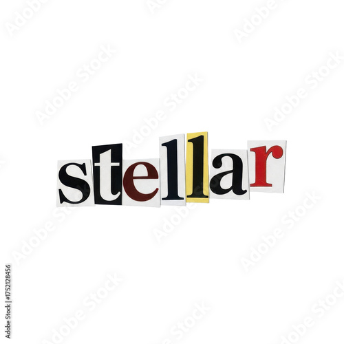 stellar, headline, cut-out, letter, typography, text, design, bold, creative, marketing, advertising, promotion, announcement, message, communication, concept, idea, stylish, modern, vibrant, unique, graphic, element, art, collage, paper, mag, font, black, white, red, yellow, brand, branding, campaign, visual, inspiration, powerful, statement, attention, news, information