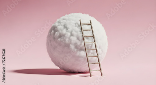 Step ladder leading to clouds . wallpaper, Growth, future, development concept. Minimal pink compostition.