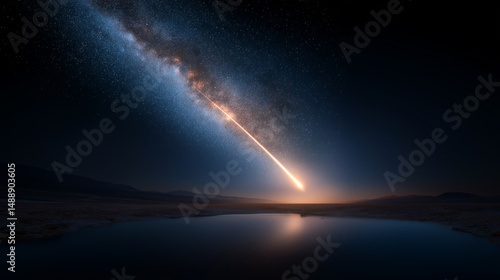 Sternschnuppe über Nachthimmel mit Milchstraße und Mondschein am Horizont