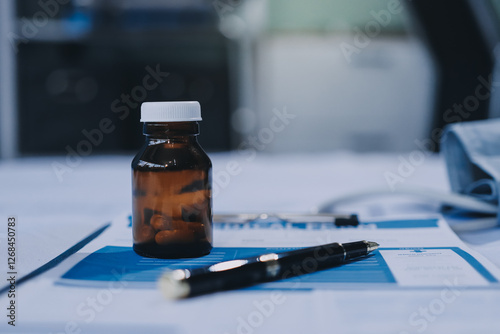 adult, blank, blue, book, bottle, care, chair, computer, co-worker, discussion, doctor, document, empty, female, frowning, healthy lifestyle, hospital, disease, insurance, labcoat, laptop, list, male, medicine, meeting, man, necktie, notepad, nurse, paper, patient, pen, crayons, people, pharmacy, photo, pill, prescription, serious, service, stethoscope, symbol, technology, wireless technology, woman, working