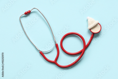 blue, christmas, decorative, hat, stethoscope, aid, background, card, care, celebration, clinic, colours, composition, congratulation, december, diagnosis, disease, doctor, equipment, eve, event, festive, flat, gift, greeting, happy, health, help, holiday, hospital, disease, knitted, lay, medicals, medicine, merry, new, object, present, santa, service, disease, tool, top, traditional, treatment, view, winter, christmas