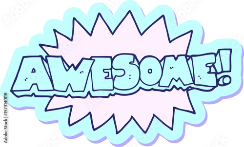 sticker of a awesome cartoon shout in bright neon color