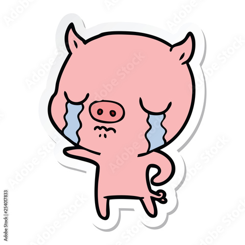 sticker of a cartoon pig crying