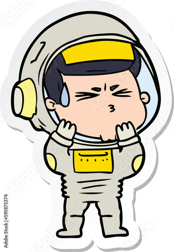 stressed, effort, sweating, hard, working, astronaut, space, astronaut, man, male, suit, cartoon, sticker, stick, on, icon, decal, label, drawing, illustration, retro, doodle, freehand, free, hand, drawn, quirky, art, artwork, funny, character