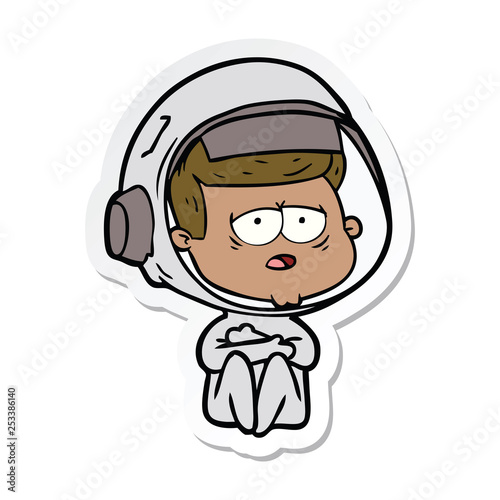 sticker of a cartoon tired astronaut