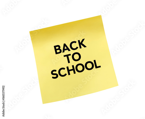 Sticky note with back to school message on yellow paper on transparent background, PNG