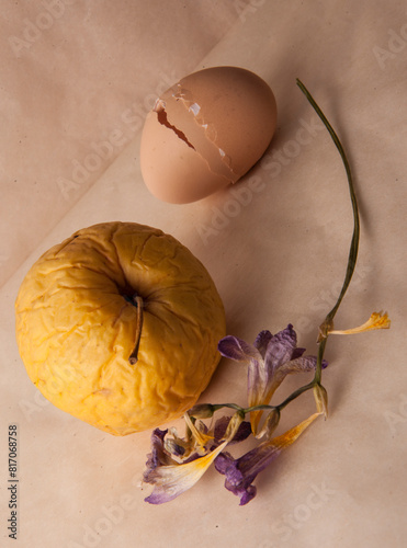 apple, yellow, eggshell, flower, egg, autumn, fall