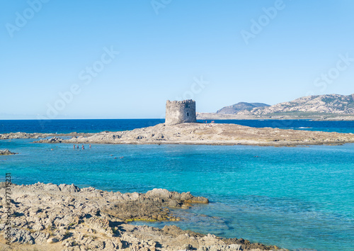 Stintino (Italy) - One of the most popular sandy beaches in Italy, 'La Pelosa', in Sardegna island, province of Sassari, in the Asinara sea national park