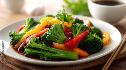 broccoli, bell pepper, stir-fried, vegetable, soy sauce, fresh produce, vitamin, culinary arts, alimentary, plate, chopstick, table setting, food photography, asian cuisine, balanced diet, vegan, vegetarian