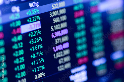 Stock exchange market chart, Stock market data on LED display. Business analysis concept.