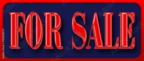 Stock Illustration - Large Red Text: FOR SALE, 3D Illustration, Blue Background.
