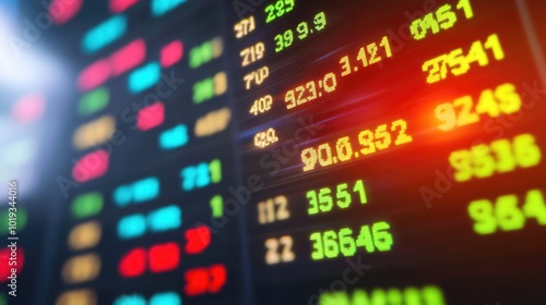 Stock Market Display with Digital Data and Numbers