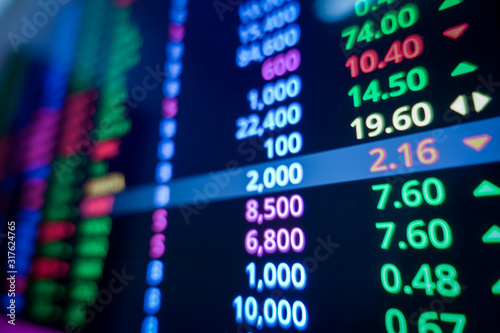 Stock market graph and ticker for businese analysis on LED screen monitor. Finance, Investing and exconomic concept.