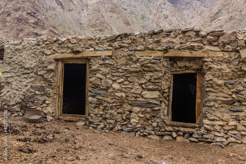 Stone building in Jizev (Jisev or Jizeu) village in Pamirs mountains, Tajikistan
