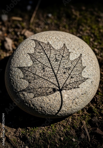 Stone canvas: A delicate leaf imprint captures nature's fleeting beauty on a textured rock revealing the essence of