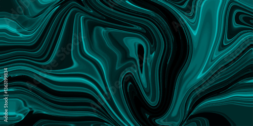 Stone ceramic art wall interiors backdrop design. Black and blue marble oil ink liquid swirl texture. liquid metal close-up, wide horizontal banner. Abstract background luxury cloth or liquid wave