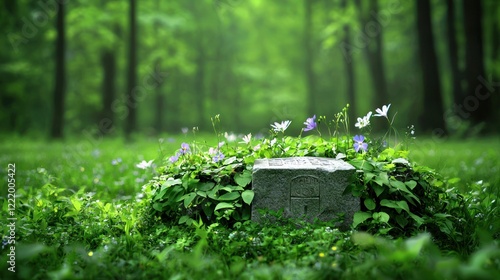 forest, grave, flower, spring, stone, green, grass, nature, memorial, peace, serenity, calmness, calm, quiet, peaceful, stillness, solitude, memory, remembrance, landscape, scenery, flora, vegetation, wildflower, plant, leaf, lush, vibrant, natural, environment, wildlife, habitat, ecosystem, beauty, scenic, view, image, photo, picture, photo, art, visual, aesthetic, artistic, composition