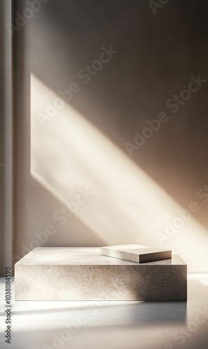 minimal, modern, dais, platform, stone, marble, product, display, showcase, design, interior, studio, presentation, abstract, background, light, shadow, beige, brown, texture, surface, clean, simple, elegant, luxury, beauty, branding, aesthetic, promotion