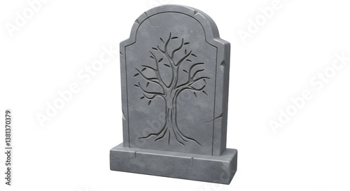 gravestone, gravestone, stone, tree, carving, memorial, cemetery, burial, death, grief, remembrance, rip, rest in peace, funeral, marker, historical building, grave, isolated, white background, grey, tree branch, root, carved, design, pattern, illustration, symbol, shape, sculpture, object, artwork, digital artwork, rendering, artistic, concept, graphic, element, spiritual, belief, mourning