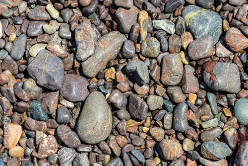Stones polished by the wave action of the sea on Jasper Beach, near Bucks Harbor, Maine