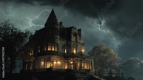 luxury home, storm, lightning, creepy, night, mystery, intense, aesthetic, horror, skittish, property, darkness, picture, fear, stormy, real, thunder, atmosphere, dramatic, shadow, rain, estate, light, tension, weather, scarey, large, setting, silhouette, haunted, window, eerie, image, grand, scene, tree, gothic, photo, thriller, big, home, vintage, exterior, cloud, art, house, architectural, dark