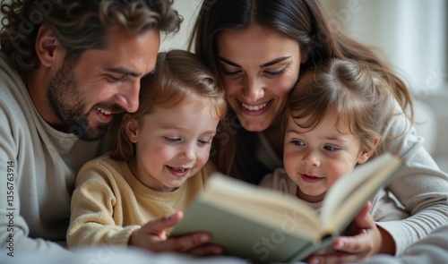 happy family, storybook, closeup, focused, bedchamber, children, macro, family, children, boy, mother, people, smiling, father, group, woman, happiness, son, children, daughter, smile, fun, mother, love, children, together, eltern, girl, 4, childhood