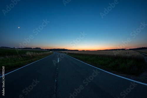 field, sunset, street, countryside, farming, agricultural, farming, way, itinerary, communication, evening, nature, outside, horizon, cornfield, cornfield, roadside, asphalt, roadway, dark, dark, alone, farm, peasant, farmer, crop, moon, moonlight, field