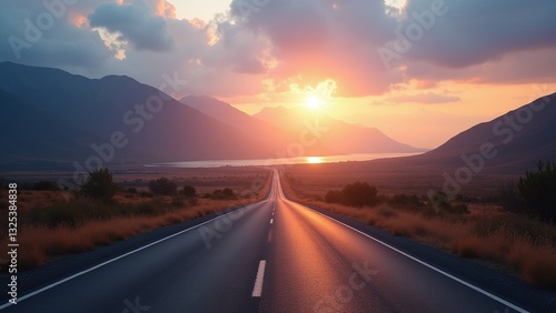road, highway, sky, travel, landscape, asphalt, sunset, speed, horizon, car, way, nature, driving, cloud, cloud, journey, sun, drive, empty, motion, rural, country, fast, transportation, line
