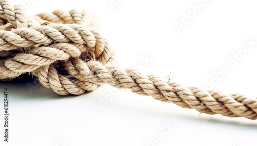 Strands of rope in a knot, in the style of disintegrated, minimalist, ropes knots on white background. Generative Ai.