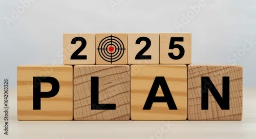 Strategic Planning for 2025: Wooden Blocks Displaying Goal-Oriented Business Plan and Future Vision for Success