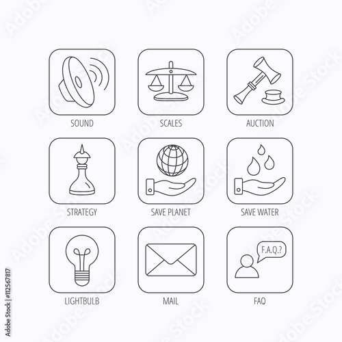 sound, scale, justice, chat, speech, business, bubble, human, faq, auction, hammer, law, lamp, mail, light bulb, work, envelope, service, globe, earth, helping, hand, save, planet, water, talk, drop, question, strategy, support, icon, flat, linear, line, outline, signs, vector, thin, square, grey, corner, black, grey, rounded, white, background