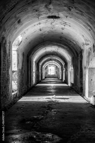 Stratified remains of ancient and modern fortresses. A unique example in the world. The fortress of Osoppo. Black and white.