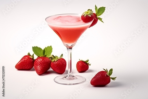 Strawberry Alcoholic Cocktail, Refreshing Summer Drink on White Background
