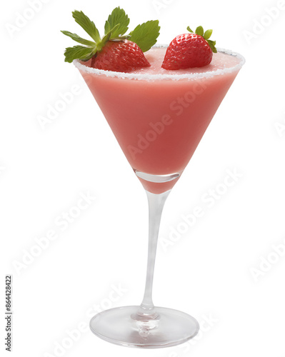 strawberry daiquiri alcoholic on white background, strawberry smoothie in glass