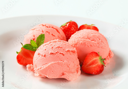 ice cream, strawberry, scoop, pink, fruit, fresh, strawberry, cross section, deliciously, sweet, food, dessert, plate, studio shot