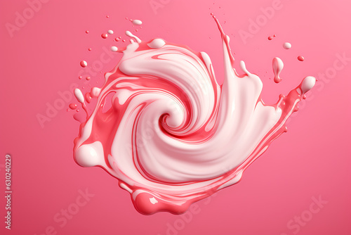 Strawberry Milk swirl splash on a pink background